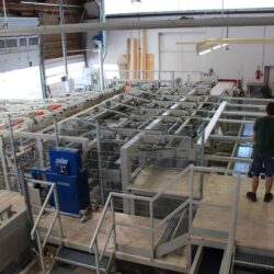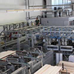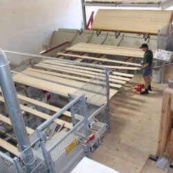 Hobelwerksmechanisierung 3-5 m mit Lattenbündeleinrichtungen, zusätzlichen Abstapelungen für Qualität A+B und Sondersortimente.