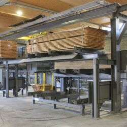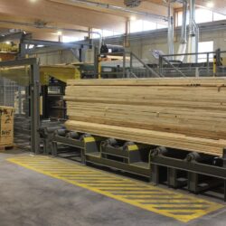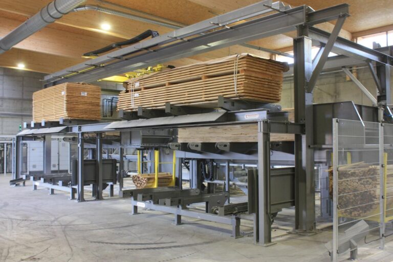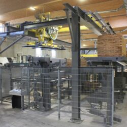 Automatische Vakuumbeschickung sowie Mechanisierung der Keilzinkung und Abstapelung.